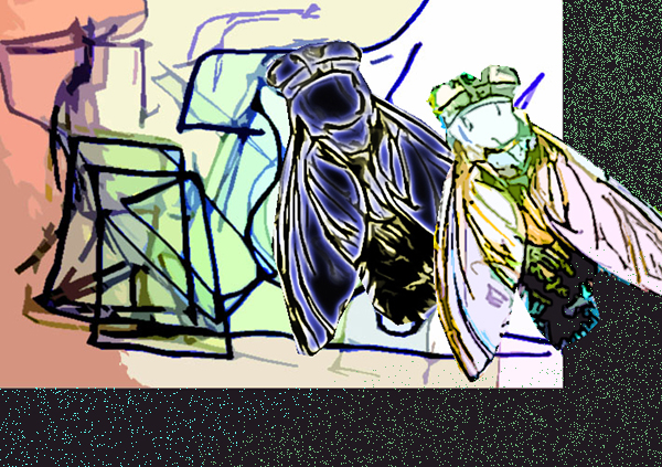 Die Fliege (3-Farbenzeichnung nach Foto)