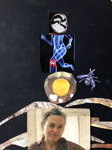 Große Wollbiene (3-Farb-Zeichnung, gelb gehöht, Bearbeitungen, Foto-Collagen