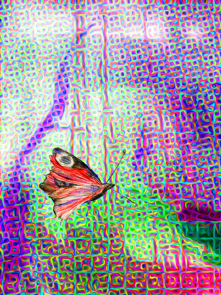 Tagpfauenauge und Vermutungen über sein Sehen (3-Farb-Zeichnung, Bearbeitungen)