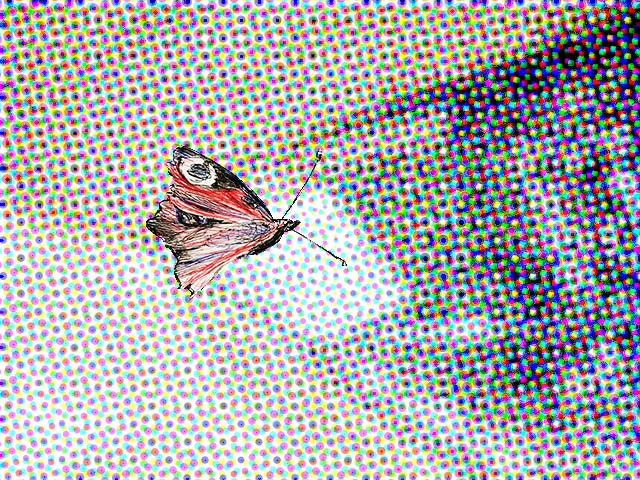 Tagpfauenauge und Vermutungen über sein Sehen (3-Farb-Zeichnung, Bearbeitungen)