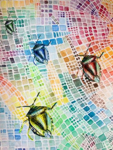 Grüner Schildbürger und brauner Gentleman (2 dreifarbige Zeichnungen, Bearbeitungen, Foto-Collagen)