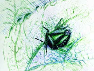 Grüner Schildbürger und brauner Gentleman (2 dreifarbige Zeichnungen, Bearbeitungen, Foto-Collagen)