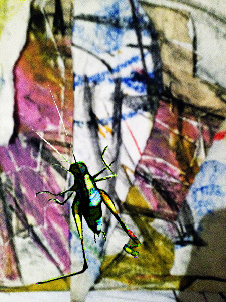 Der große Hüpfer (3-Farb-Zeichnung, Bearbeitung, Foto-Collagen)