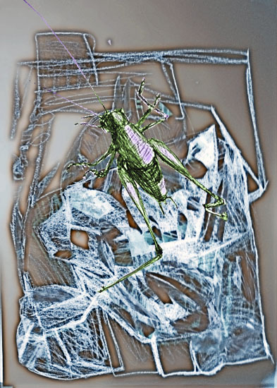 Der große Hüpfer (3-Farb-Zeichnung, Bearbeitung, Foto-Collagen)
