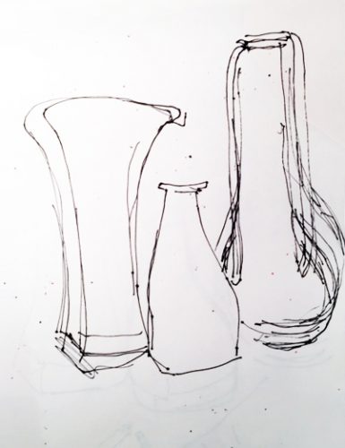 Drei Vasen: Filzstift in schwarz-weiß, schwarz-rot und 3-farbig, Bearbeitungen.