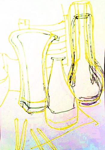 Drei Vasen: Filzstift in schwarz-weiß, schwarz-rot und 3-farbig, Bearbeitungen.