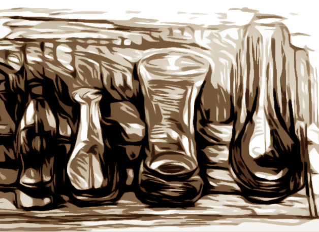Vasen, Vasen (und eine Wasserflasche). Bearbeitungen von zwei Zeichnungen.