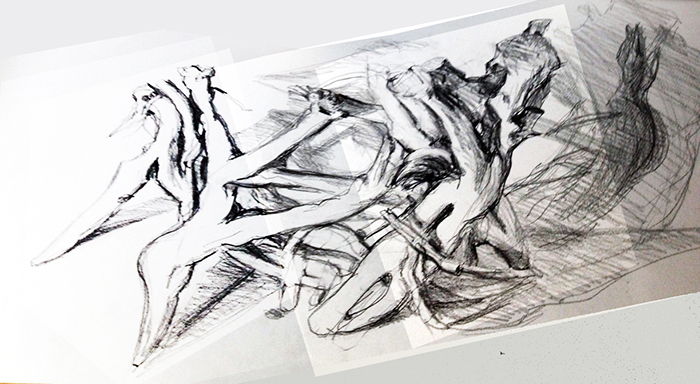 Das meinte ich eigentlich nicht, Ulli. Niemals würde ich mich trauen, Bäume als „mindless“ zu bezeichnen, denn es bedeutet ja auch sinnlos. Ich hatte mehr eine anthropomorphe Szene im Sinn – Gezerre und Getrete, Geschrei und Gegenwehr – die durch diese ineinander verschlungenen Baum-Efeu-Gestalten assoziiert wird. Ich hätte stattdessen auch Menschen zeichnen können.