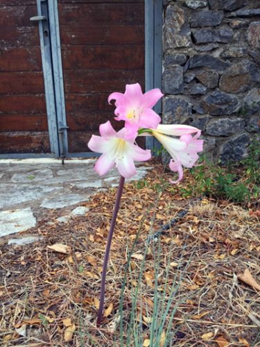 Ich muss ja sagen, dass ich die Lilie so ganz eigene Blätter wirklich exotisch finde, sie schickt da einen nackten Stengel aus dem Boden, an dem die prächtigen Blüten prangen … kann mich nicht erinnern, so eine Pflanze schon mal gesehen zu haben.