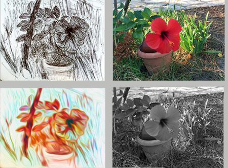 ← Tägliche Zeichnung (1): Hibiskusblüte. Rot in der Schwarz-Weiß-Zeichnung.