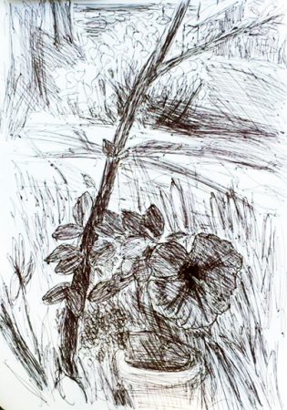 ← Tägliche Zeichnung (1): Hibiskusblüte. Rot in der Schwarz-Weiß-Zeichnung.