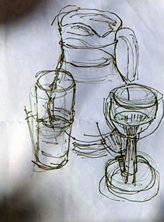 ← Skizzen von unterwegs (Gläser und Karaffe, medizinisches Untersuchungszentrum, Bahnhofsmuseum, Tavernen-Katze)