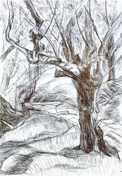 Mittagslicht im Olivenhain (Kuli-Zeichnung)