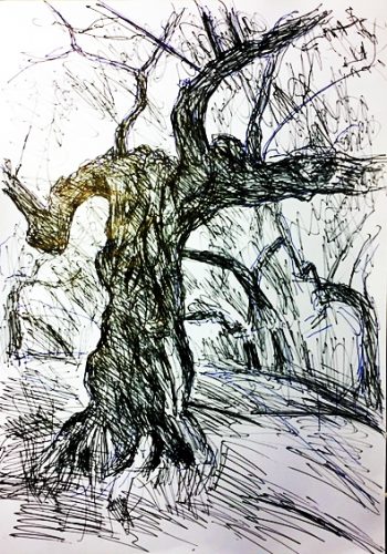 ← Tagtägliche Zeichnung: Ölbäume im Restlicht des Tages (zweifarbig blau-schwarz)