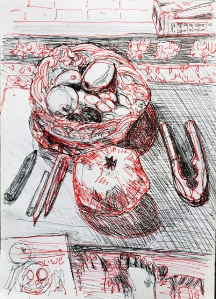 ← #ripe. Reifung einer Zeichnung (Granatapfel-Stillleben)