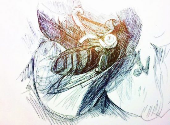 Schwebfliege und Glockenblume (Natur auf dem Balkon). Drei Zeichnungen,zwei Bearbeitungen