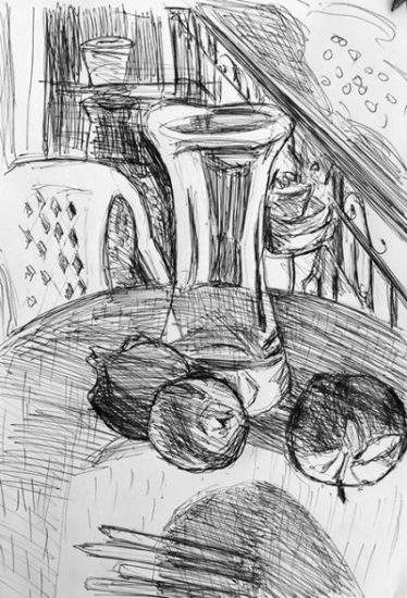 ← Tägliche Zeichnung: Granatäpfel, Vase auf Balkon, später Vormittag.