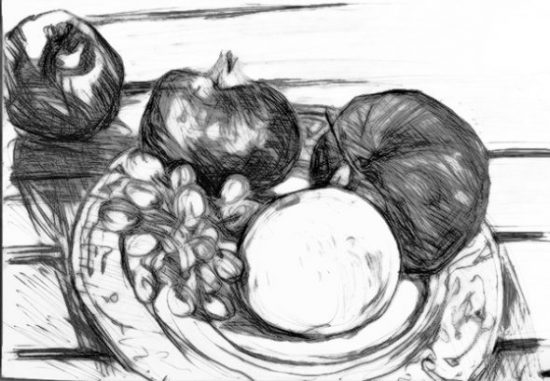 ← Zwei mal Obstteller: Granatäpfel, Weintrauben und Pampelmuse