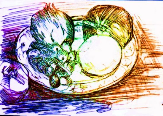 ← Zwei mal Obstteller: Granatäpfel, Weintrauben und Pampelmuse