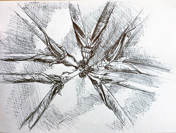 Gerhards Foto von einer Pflanze, deren Zentrum von einer starken Kraft zusammengehalten zu sein scheint, während die „Äste“ sich verzweigen und mit entsprechend großer Kraft nach außen streben … hat mich ziemlich beeindruckt. Ich fand es symbolisch für den Zusammenhalt, aber auch das Einengende von Verwandtschafts-Systemen. Heute holte ich es hervor, um es ein wenig besser zu verstehen.