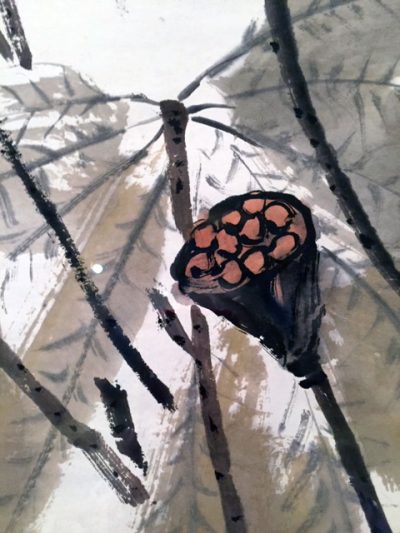 Natürlich zeichnete er nicht nur Insekten, sondern auch all die anderen Motive, die wir aus der traditionellen chinesischen Kunst kennen. Dabei machte mir insbesondere der Gegensatz zwischen den feinsten Zeichnungen der Insekten und der abstrahierenden und manchmal fast primitiven Pinselführung bei anderen Themen Eindruck. Hier ein paar Bildausschnitte.