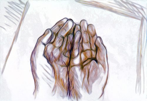Handschale (Schatten sammeln). Tägliche Zeichnung, zweifarbig