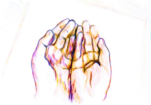 ← Handschale (Schatten sammeln). Tägliche Zeichnung, zweifarbig