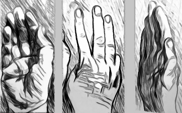 Die tägliche Zeichnung: „Tischlein deck dich“ (Die Hand als Urform von Messer, Gabel, Löffel)