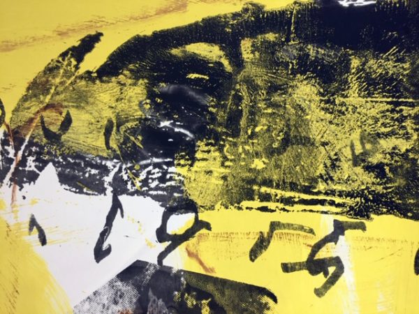 Sehr viel reiste er in arabischen Ländern, einmal auch nach Indien, aber vor allem immer wieder nach Ägypten. Spuren davon zeigen sich in seiner Malerei, die er mit Hieroglyphen und anderen Schriftformen durchsetzt. Zur Illustration ein Original und zwei Bildausschnitte.