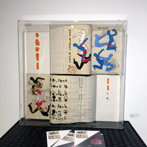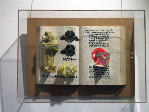 Auch der dritte hier vertretene Künstler, Konstantinos Xenakis, wurde in Kairo geboren, doch ist er deutlich älter (Jg 1931) als Lappas. Auch er ging nach Paris, um zunächst Architektur zu studieren. In den 70er Jahren lehrte er an den Kunstakademien von Paris und Berlin – und so ist er der in Deutschland wohl bekannteste der hier vertretenen Künstler. Auch er arbeitet mit verschiedenen Alphabethen – altägyptischen, griechischen und phönizischen vor allem, dazu auch mit Gegenständen, deren Zeichenhaftigkeit es erlaubt, sich mit Menschen über alle kulturellen Grenzen hinweg zu verständigen (Semiologie). Zwei seiner kleinen Installationen waren in der Ausstellung zu sehen.