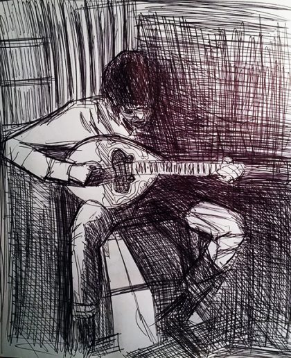← Kugelschreiber-Zeichung in „geometrisierender Manier“: Bouzoui-Spieler (2)