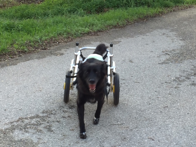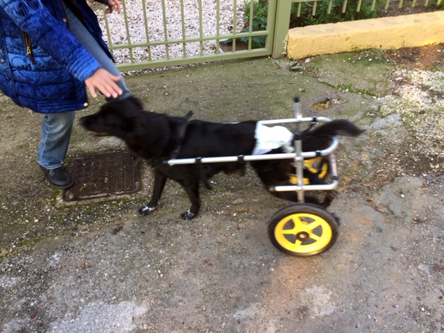 Die liebenswerte „Mutter“ gab bereitwillig Antworten, die sie sicher schon tausendmal gegeben hat. Vor sechs Jahren fand der Mann die Hündin, vermutlich angefahren, querschnittsgelähmt. Alle vier Stunden muss die künstliche Blase geleert werden. Sie sagte es wie eine Nebensächlichkeit, nur weil ich fragte. „Sechs Jahre. Alle vier Stunden…“ dachte ich. Mehr fragte ich nicht, blieb stumm vor Staunen und Hochachtung vor diesen Menschen, dieser Liebe.
