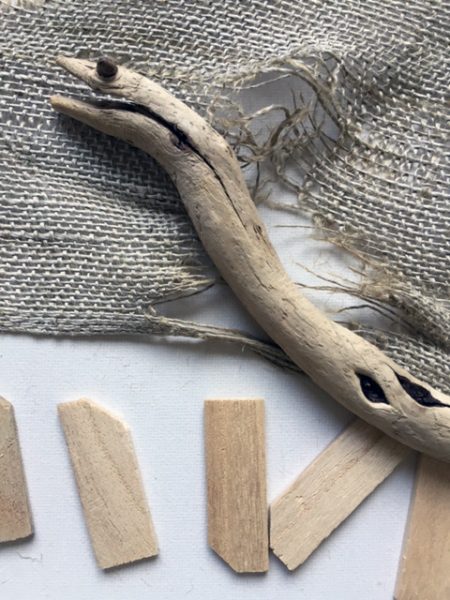 ← Holzschlänglein auf verschlissenem Tuch (Fotos, Zeichnung)
