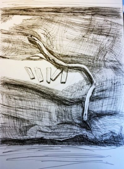 ← Holzschlänglein auf verschlissenem Tuch (Fotos, Zeichnung)