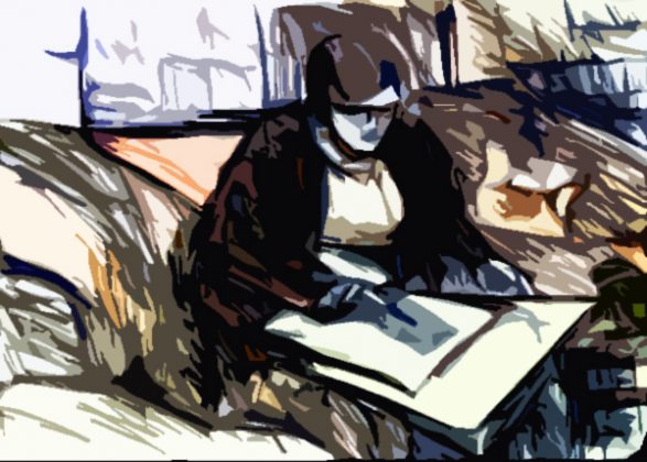 Gespräch am Kamin UND Gemeinsam Zeichnen 26 (dreifarbige Zeichnungen)