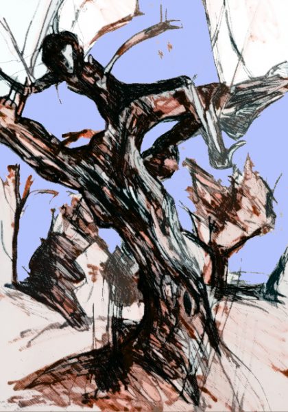 …sehr kraftvoll…und, als wehrt er sich gegen etwas, gegen das Schicksal…? …in der zweiten Skizze dann scheint der Baum versöhnlich mit dem, was ihm bestimmt ist…und ja, er nimmt es an und tanzt…er öffnet sich…