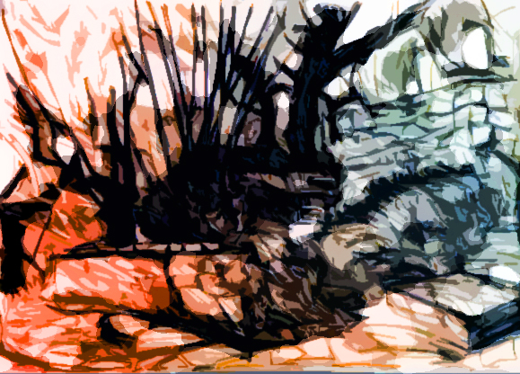 Und eine zweite Bearbeitung mit stärkeren Konturen und Kontrasten: