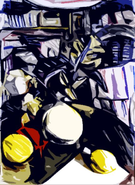 ← Obst 7 und Vase (tägliche Zeichnung, schwarz-weiß und farbig)