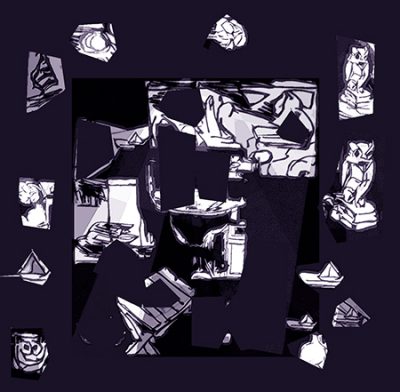 ← Am Kamin. Abwanderung der Bildelemente