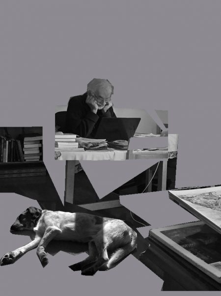 Häusliche Szene (Originalfoto und 3 Fotomontagen)