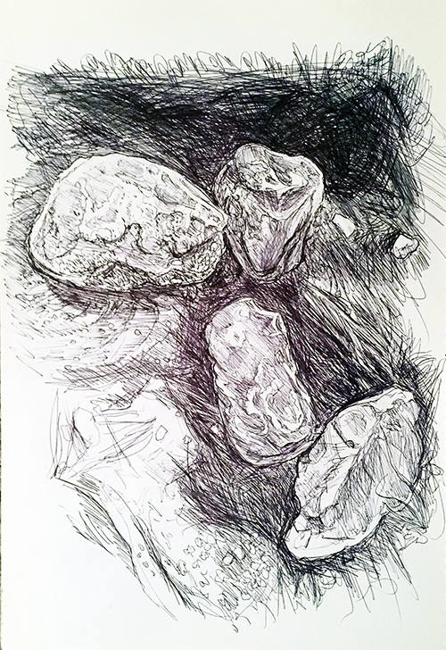 Zu welchen Beratungen sich die vier großen Bruchsteine auf dem Feld versammelt haben, weiß ich nicht zu sagen. Sicher gibt es genug, was diese Uralten bewegt. Apropos „bewegt“ – genau! Etwas oder jemand hat sie von ihrem ursprünglichen Platz fortbewegt. Man sieht noch die dunklen erdigen Vertiefungen, in denen sie zuvor lagen. Waren sie es etwa selbst, die ihren Platz verließen? Das würde mein Weltbild ziemlich erschüttern.