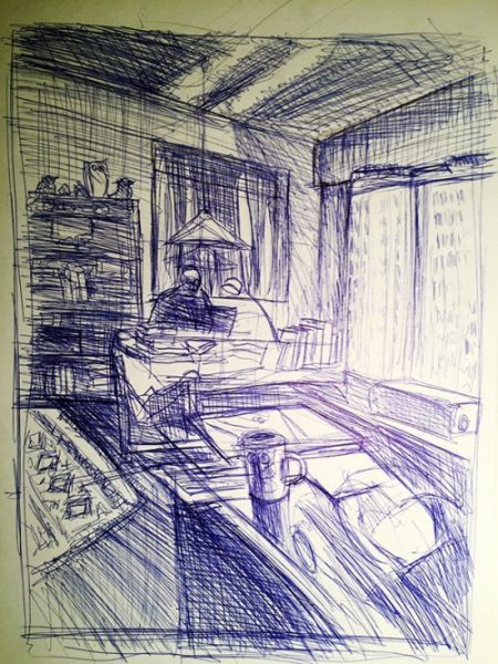 Hieronymus in unserem Gehäus (alltägliche Zeichnung und Foto-Collage)