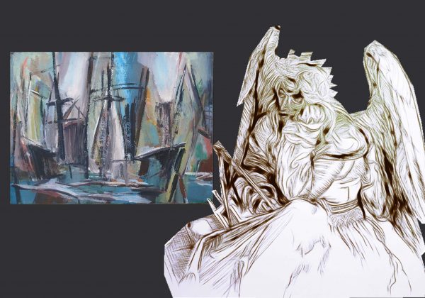 Er passt zu allen Deinen gemalten Kunstwerken, aber diese beiden passen meiner Meinung am besten zu ihm.