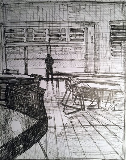 Cafeteria mit Kellner (Tägliche Zeichung)