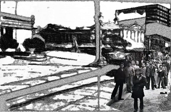 Vor der Universität Athen: Raum-Zeit-Collagen