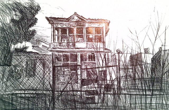 Verfallene Villa in Maroussi, Kugelschreiber, 2020-03-01