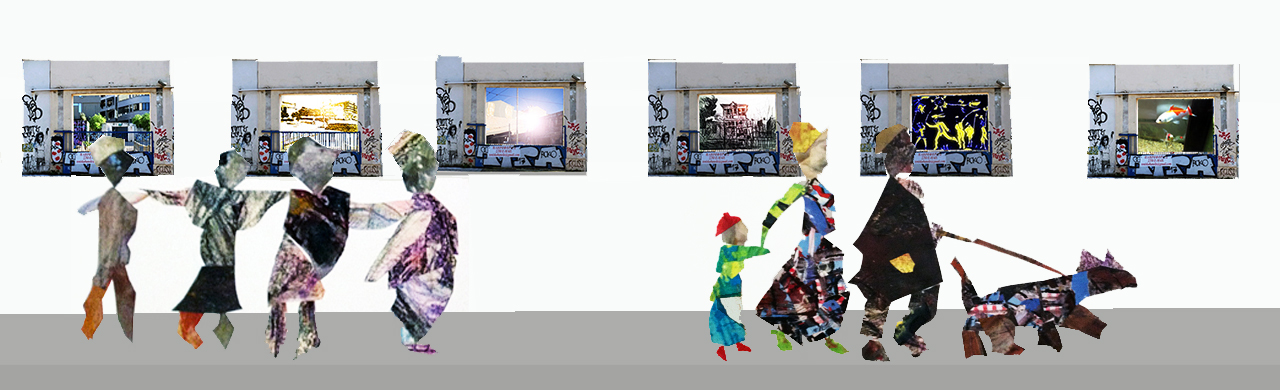 Also dachte ich: ich eröffne dort mal eine Galerie, das wird dem Stadtteil auf die Füße helfen. Anstatt des Bürogebäudes ließ ich allerlei andere Dinge – Zeichnungen, Legebilder, Fotografien – sich in der leeren Fläche spiegeln und hängte die Bildwerke schön ordentlich an die frisch geweißte Wand meiner Galerie. Leider waren die Besucher wenig bis gar nicht an meiner Kunst interessiert. Was habe ich nur falsch gemacht?
