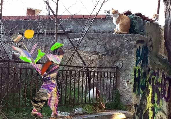 ← Wo die Angst herrscht. Dürers Ritter-Tod-und-Teufel begegnen dem Blumennarr (Collage)