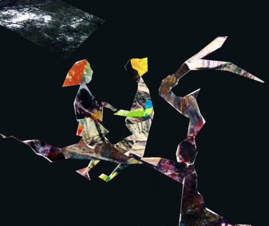 Das zweite Bild zeigt Kinder – ein hellhäutiges Mädchen, einen dunkelhäutigen Knaben – auf einem Baum. Sie lieben sich über alle von den Erwachsenen gesetzten Grenzen hinweg. Auch sie sind ganz aufeinander bezogen und schweben quasi in der Luft.