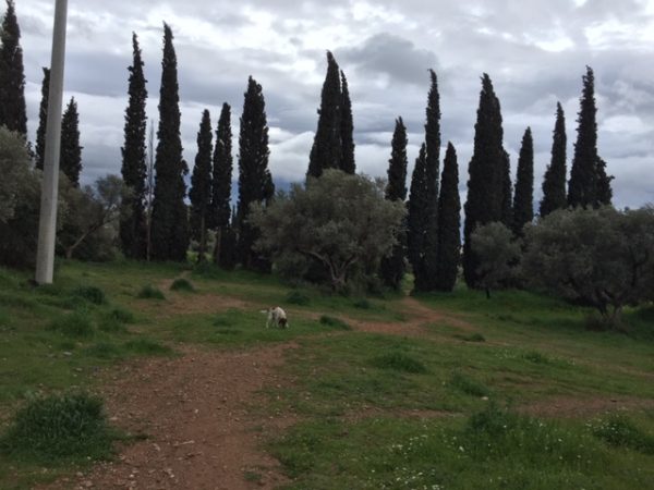 Zypressenalleen hegen das ehemalige Grundstück ein. Sogar Olivenbäume gibt es, nicht so eindrucksvolle wie in der mani, aber schön sind auch diese mit ihrem silberngrünen Laub.